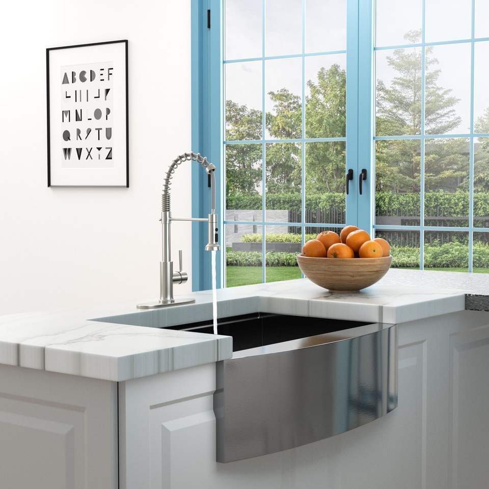 Rubinetto da Cucina Commerciale in Acciaio Inox da 21 Pollici con Doccetta Estraibile a Doppia Funzione, Finitura Nichel Spazzolato
