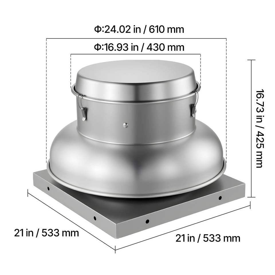 Ventilatore da Tetto in Lega di Alluminio Resistente da 21 Pollici, Ventilatore per Soffitta con Motore ad Alta Potenza e Controllo della Velocità Regolabile