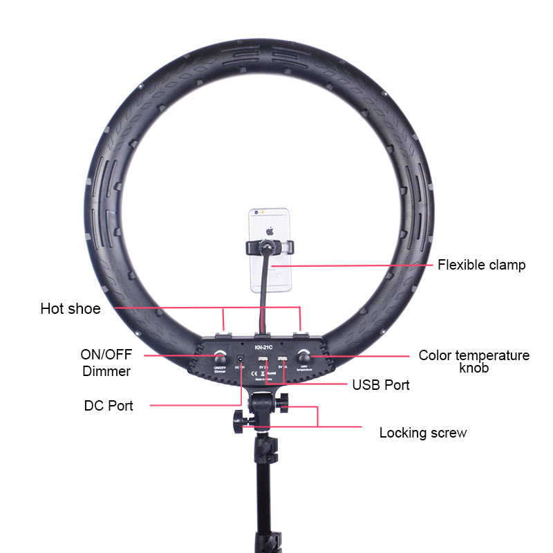 Luce ad Anello Video da 21 Pollici per Fotografia, Illuminazione 3000-6000K con Telecomando e Treppiede per Studio e Trucco