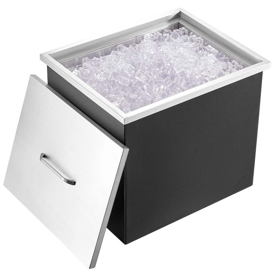 Contenitore refrigerante commerciale in acciaio inox per cucina, 21"L x 17"W x 18"H, 40 Qt, con coperchio, per esterni, per ghiaccio e bevande