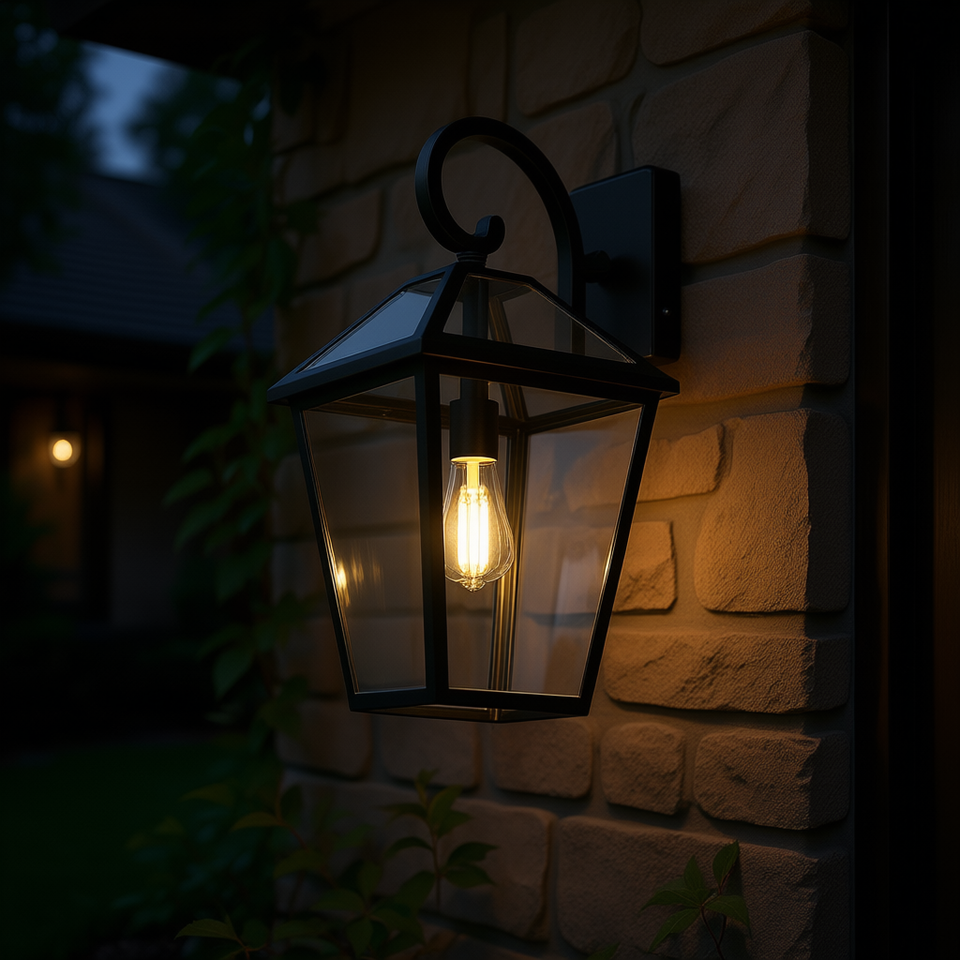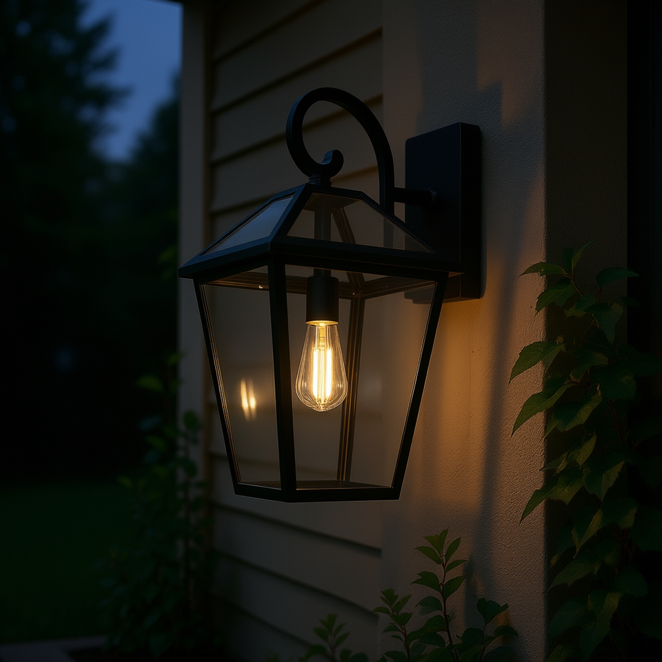 Lampada da Parete per Esterni in Alluminio Nero con Vetro Trasparente, Impermeabile, per Portico e Giardino, Applique da 21 Pollici