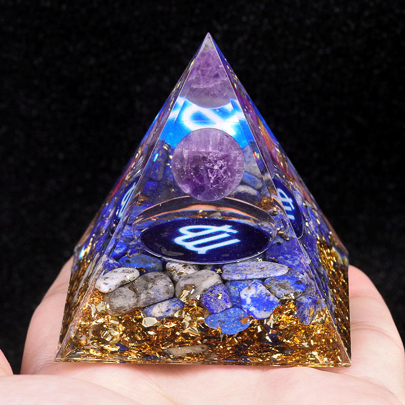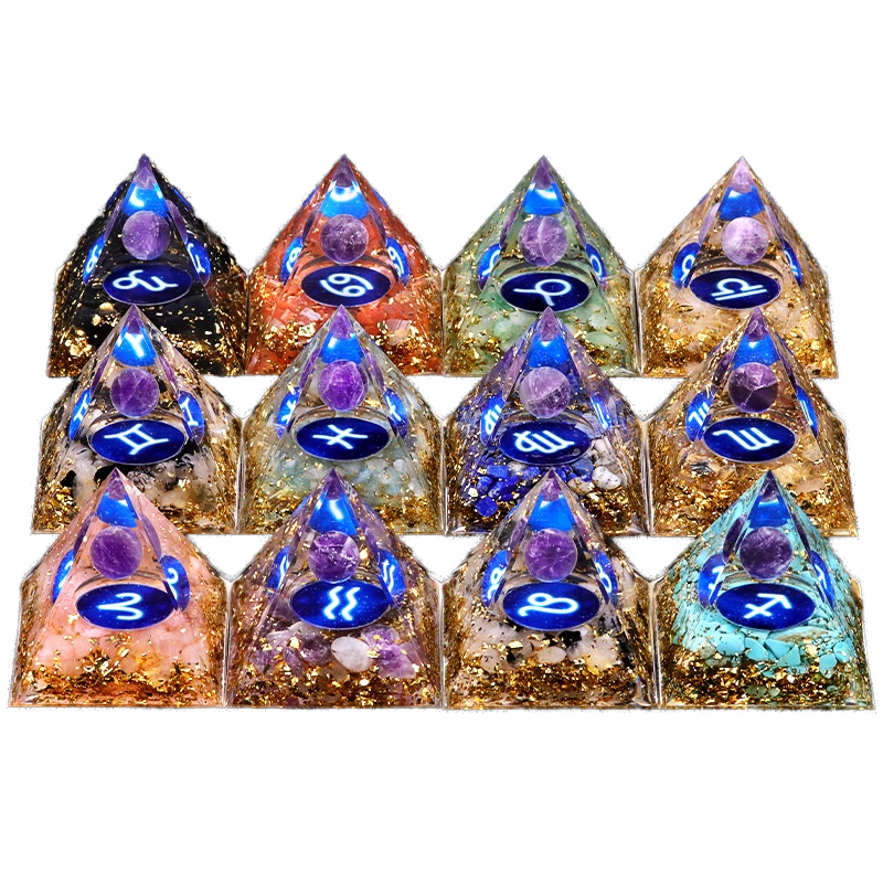 2165-Twelve Zodiac Signs 5cm Gold Pyramid Amethyst Crystal Ball Gravel Resin Polished Jinhua Home Office Desktop Ornament