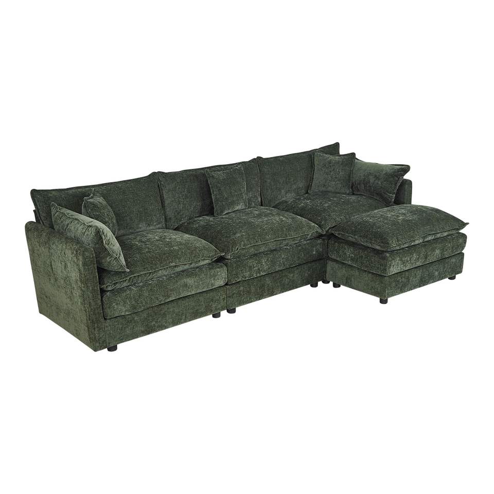 2187 Divano Chaise Longue Verde per 3 Persone con 1 Poggiapiedi