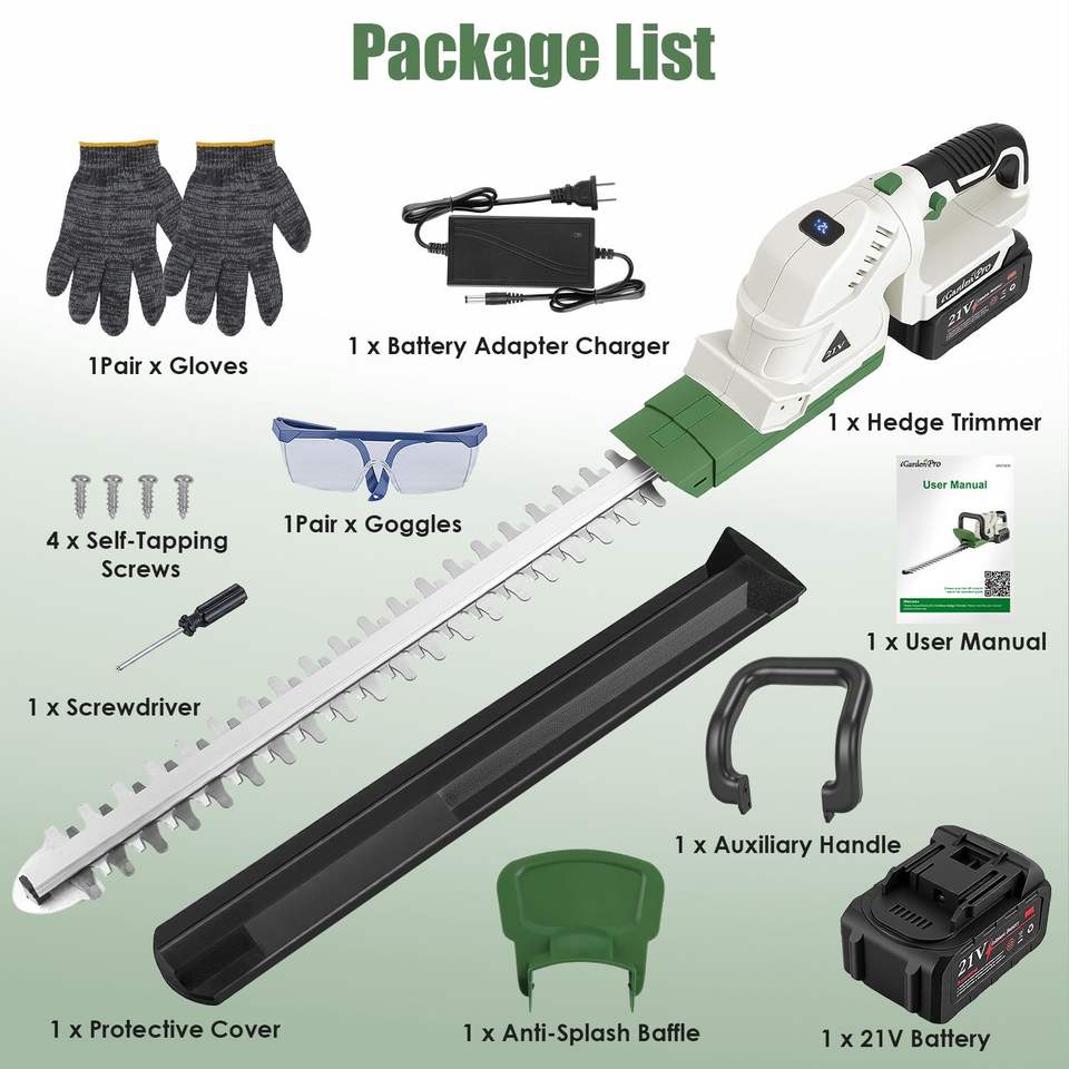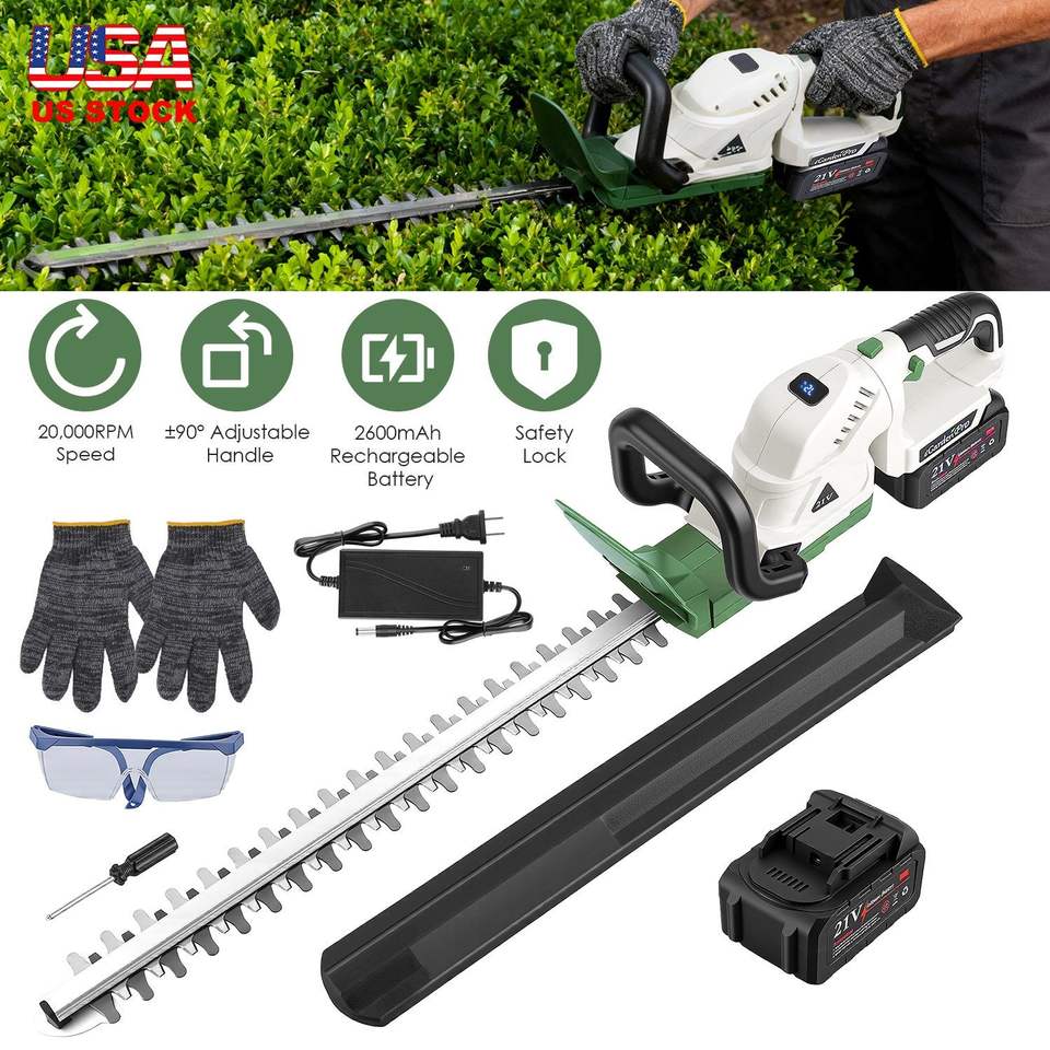 Tagliasiepi Elettrico a Batteria 21V con Lame a Doppia Azione, Diametro di Taglio 1,5 cm, Tagliabordi Portatile per Arbusti ed Erba, Prodotto Sicuro