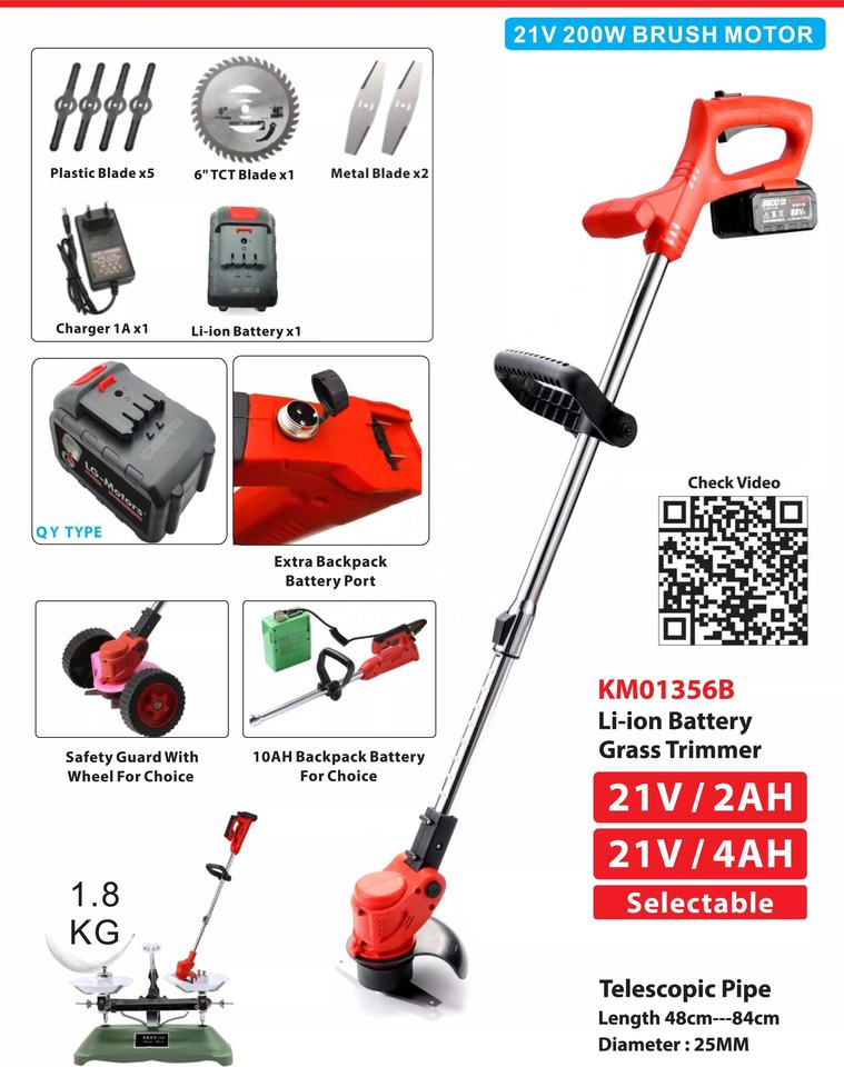 21V Cordless Grass Trimmer a batteria spazzole ruote Decespugliatore motore acciaio materiale plastico taglio linea Trimmer