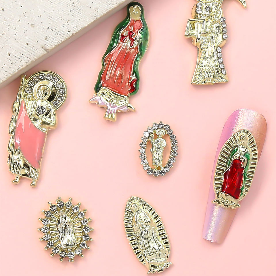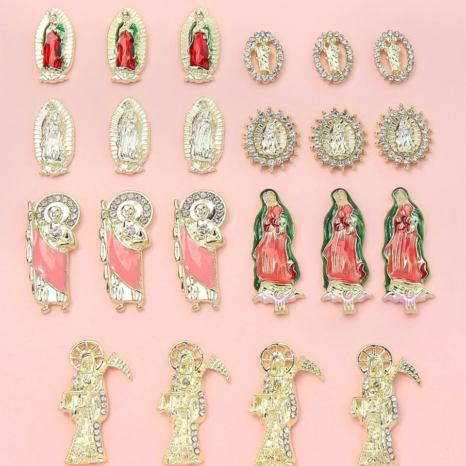 21pcs/box Alloy Mixed Virgin Mary Gemstone Rhinestone Nails Luxury Shiny 3D San Judas Nail Charms DIY Manicure Tips ZB68