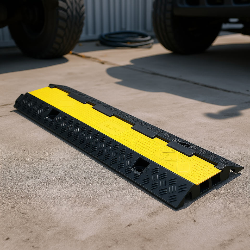 Cable Protector Ramp 2 Channel Heavy Duty Rubber 1.3 X 1.2 Channel Traffic Speed