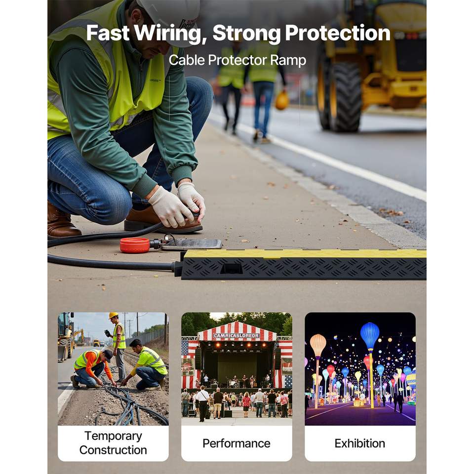 22,000 Lbs/axle Capacity Heavy Duty TPU Cable Protector Ramp 2 Channel 1.2 X 1.1 Channel Traffic Sp 22,000 Lbs/axle Capacity 2