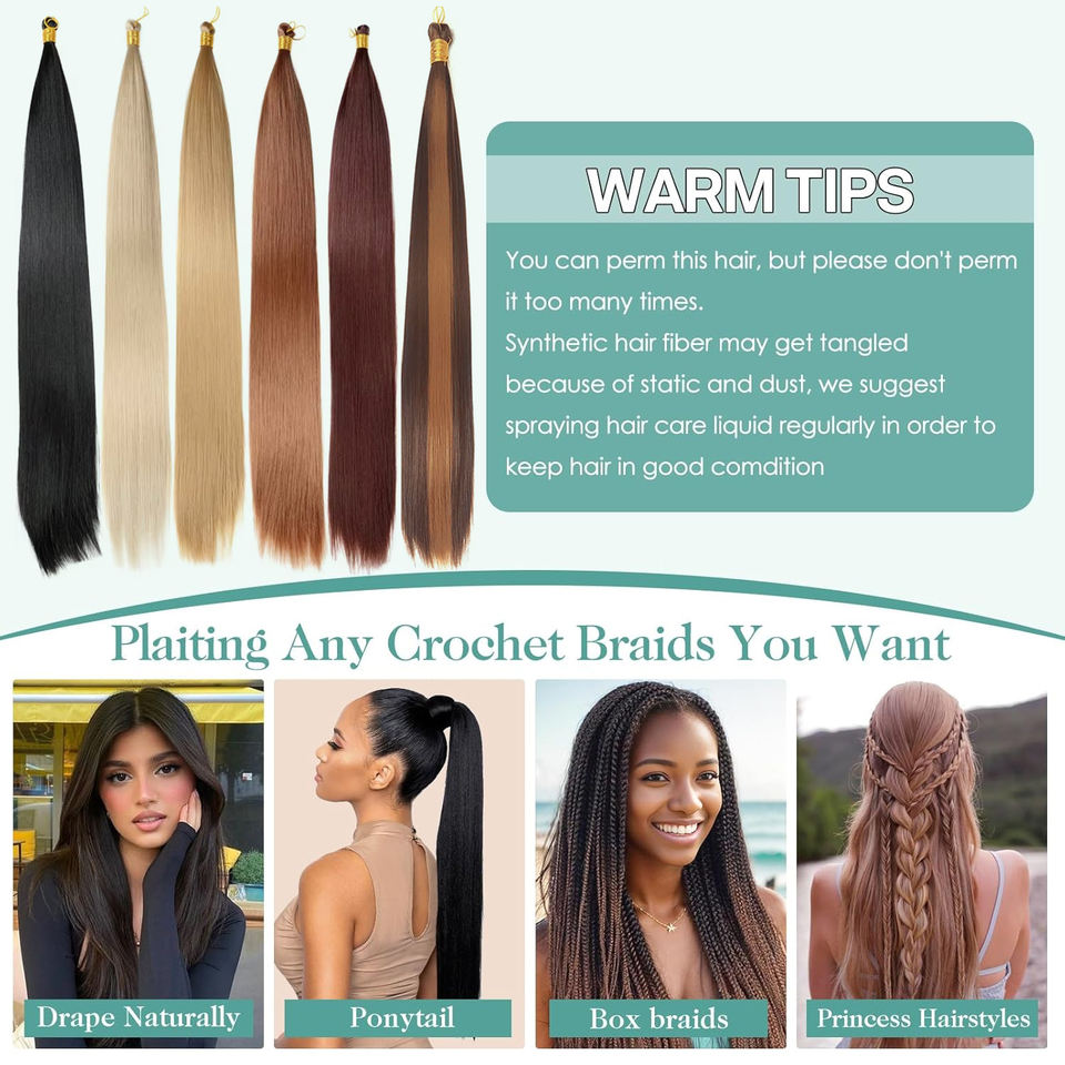 Extension per Trecce Lisce Effetto Seta 22-28 Pollici 150g, Ciocche di Capelli Sintetici Morbidi Ombre per Donne