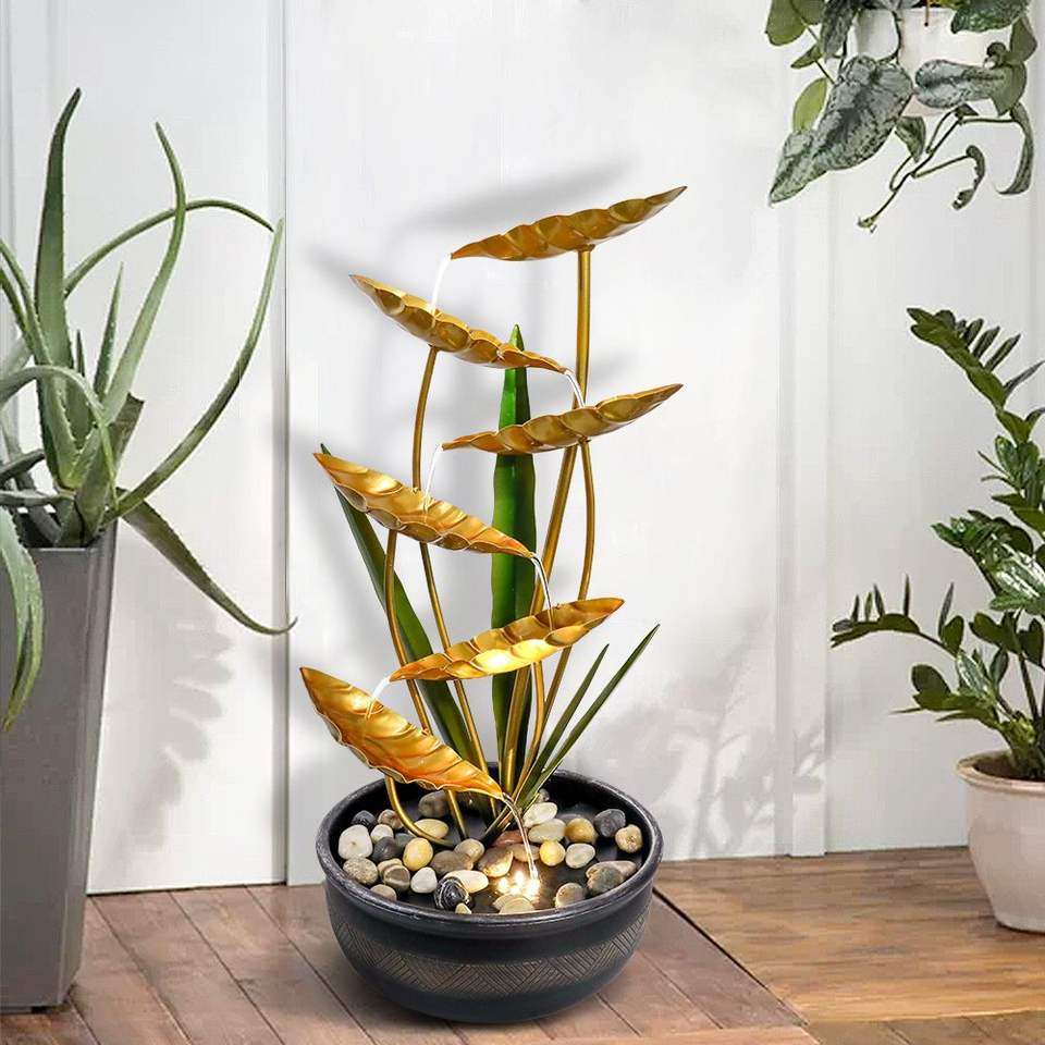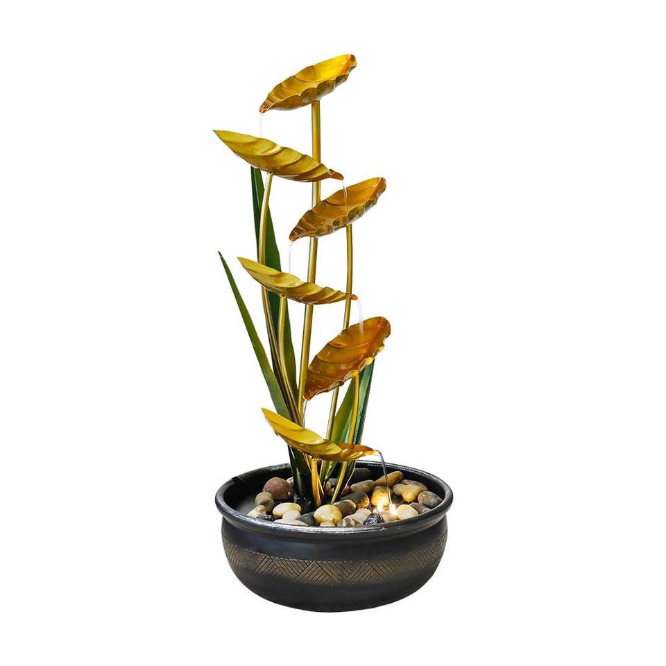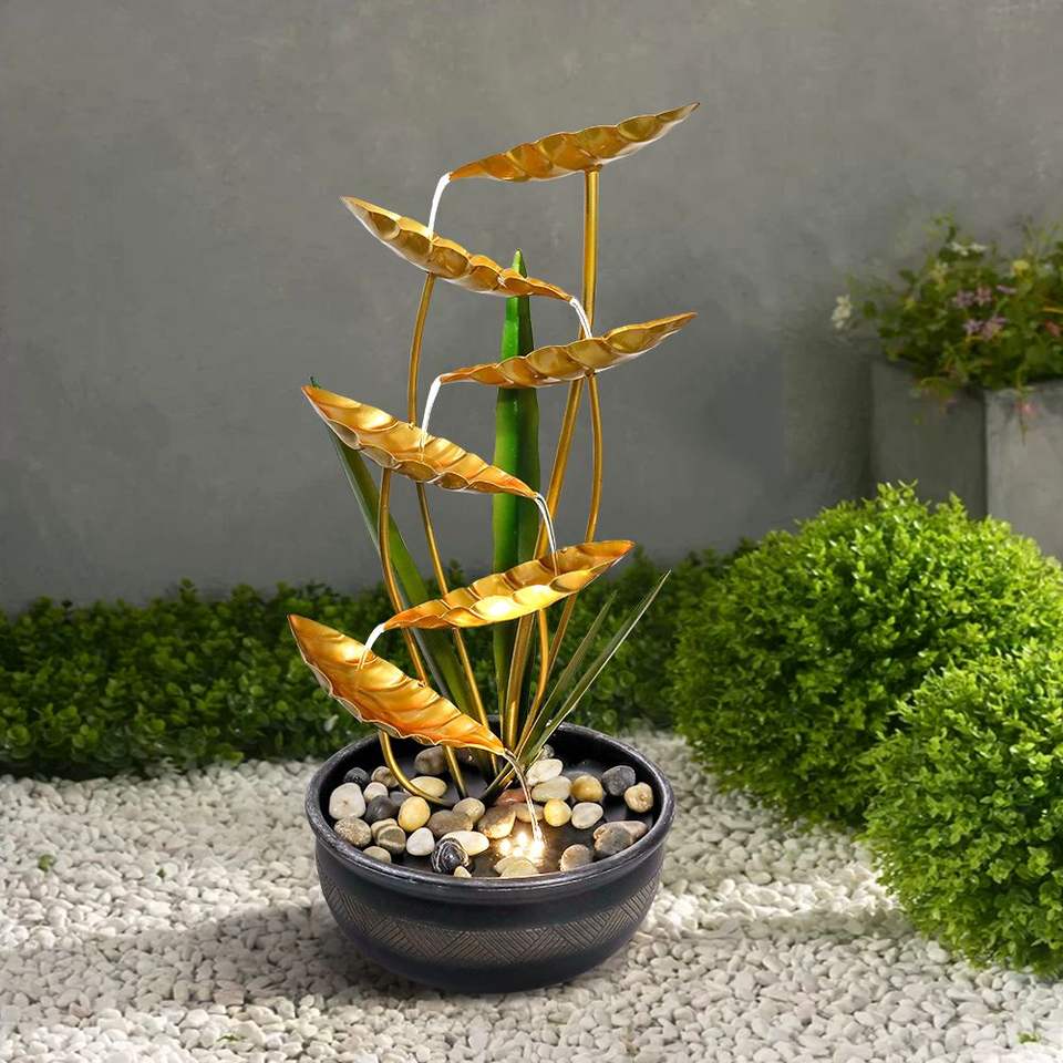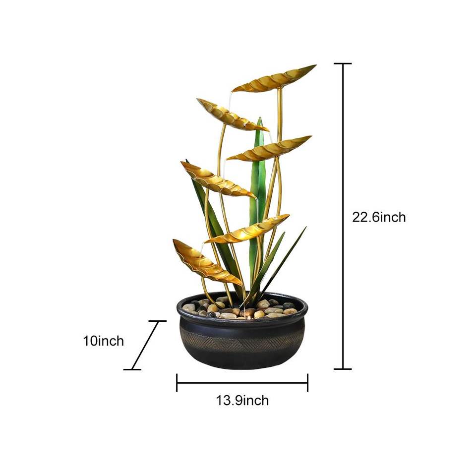 Fontana d'Acqua in Metallo con Illuminazione LED da 22,6 Pollici per Decorazioni Interne ed Esterne