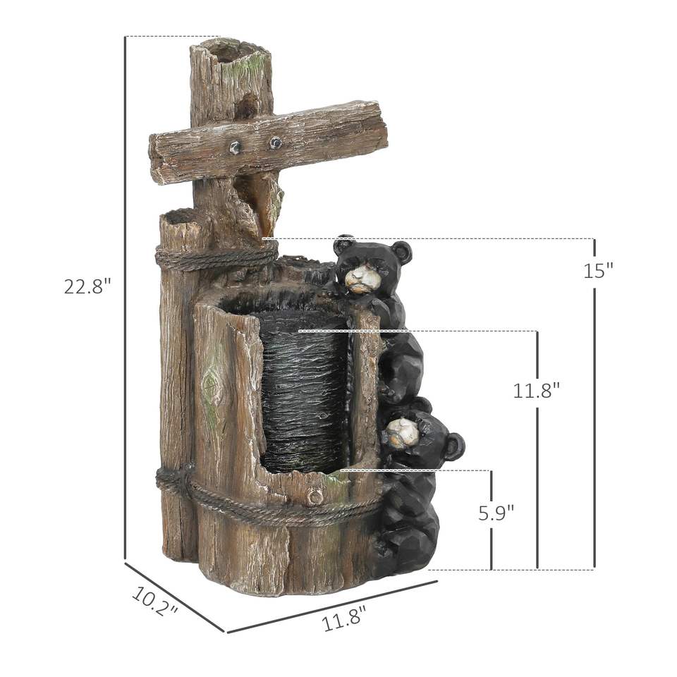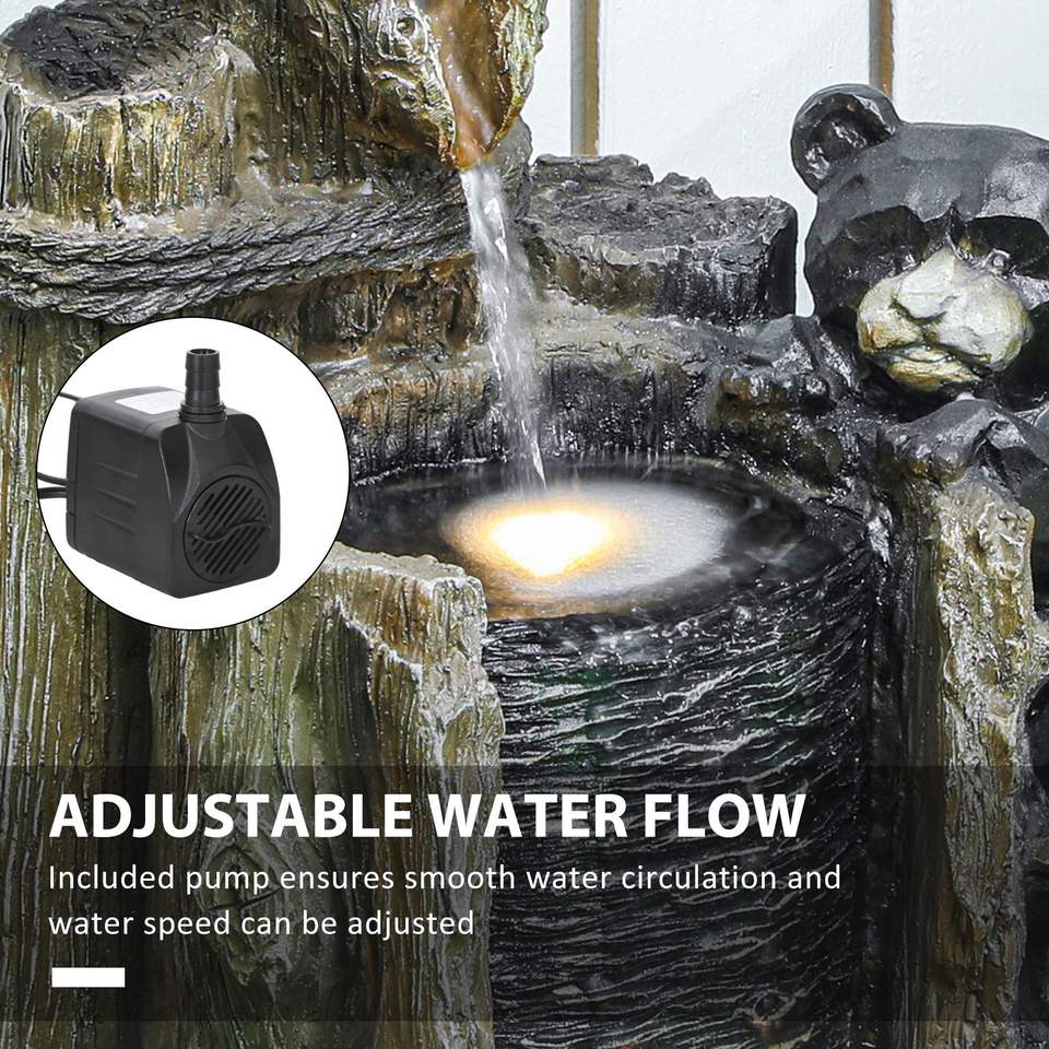 Fontana a Cascata da Esterno da 58 cm con Luci LED, Pompa e 3 Livelli, Orsi in Resina su Tronco, Elegante Fontana a Cascata da Esterno da 58 cm