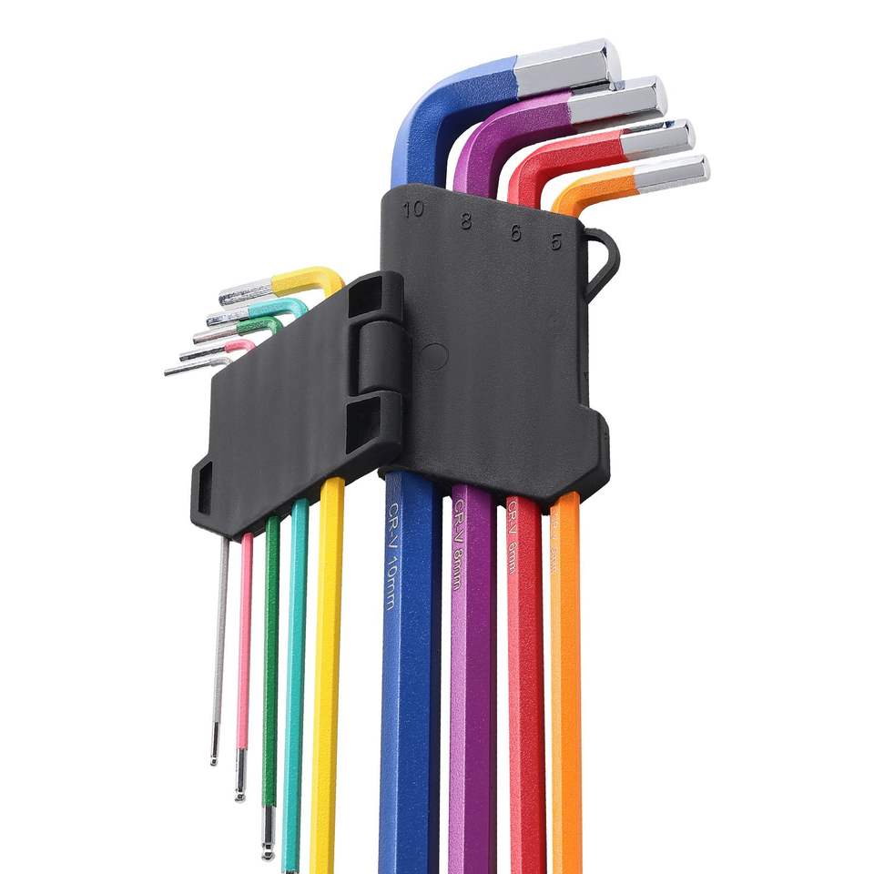 Set di chiavi esagonali a brugola da 22 pezzi, codificate a colori, con estremità sferica, metriche (1,5-10 mm) e SAE (0,050-3/8 pollici) - 22 pz.