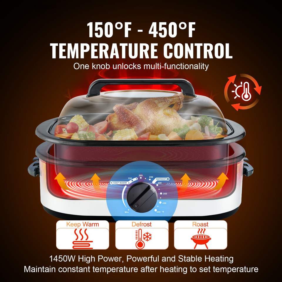 Forno Elettrico da Banco da 22 QT con Coperchio Autoriscaldante, 1450W, Funzioni Scongelamento e Mantenimento Caldo per Arrosto di Tacchino