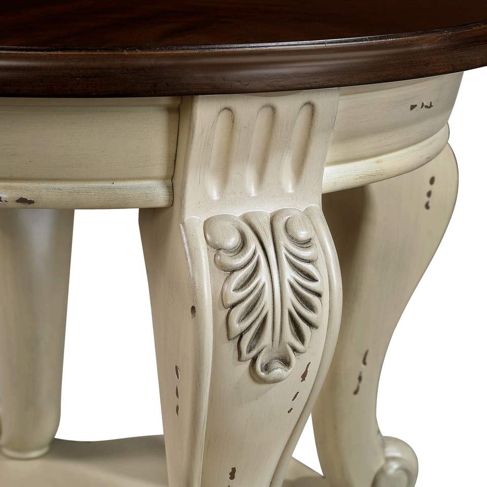 Tavolino Rotondo Bicolore 22 Pollici in Legno Massello, Facile da Montare, Tavolino Laterale per Divano, Ripiano Beige Espresso, Tavolino da Caffè per Soggiorno