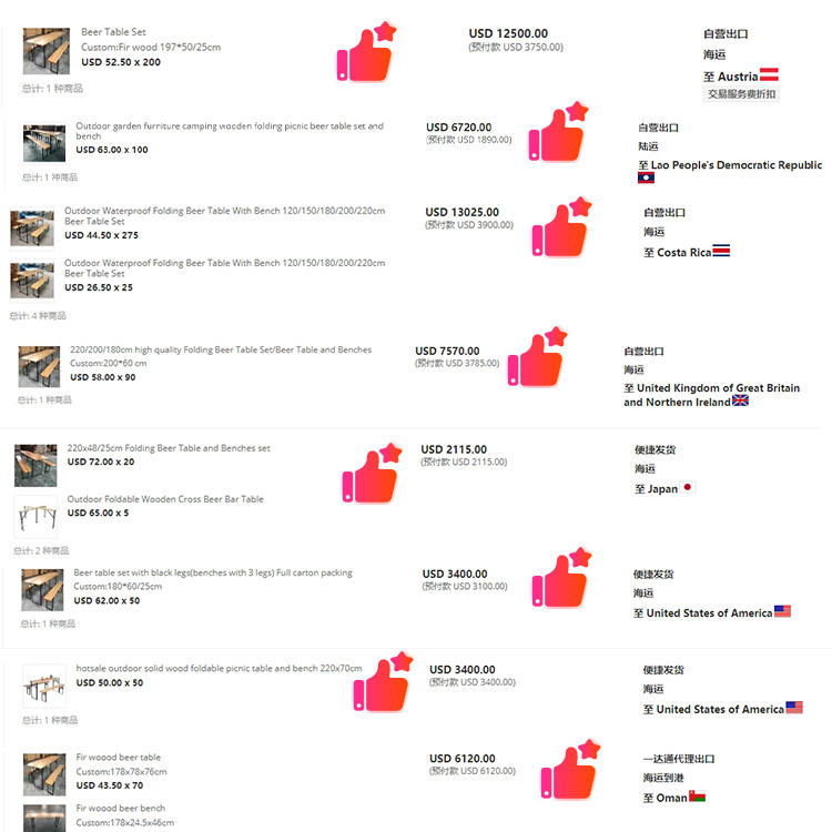 QINGDAO WELHOME Set tavolo birreria pieghevole con panche L180-220×W50-80 cm, piano abete 2,7-2,8 cm, gambe acciaio 28x28x2,5/25x1,5mm