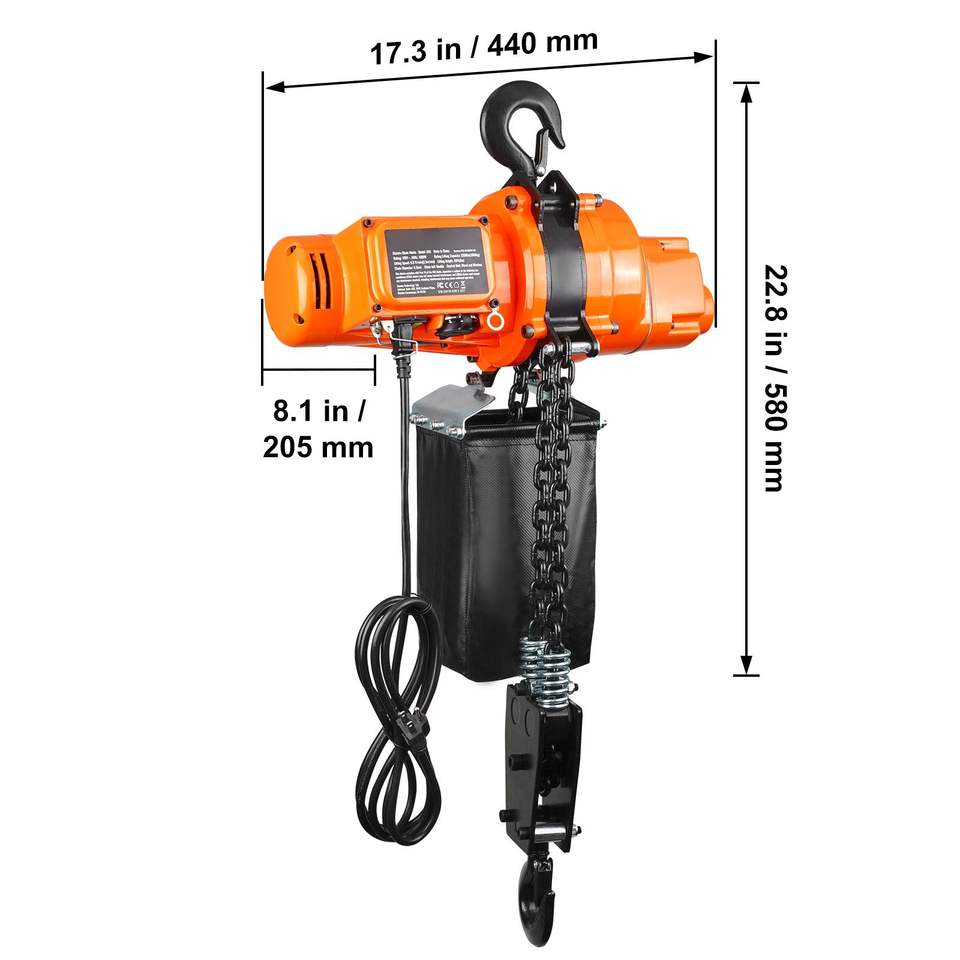 Paranco Elettrico a Catena con Capacità di Carico di 2200 Libbre, Altezza di Sollevamento di 20 Piedi, Velocità di 6,9 Piedi/min, 120V Monofase, Catena per Gru a Ponte 328
