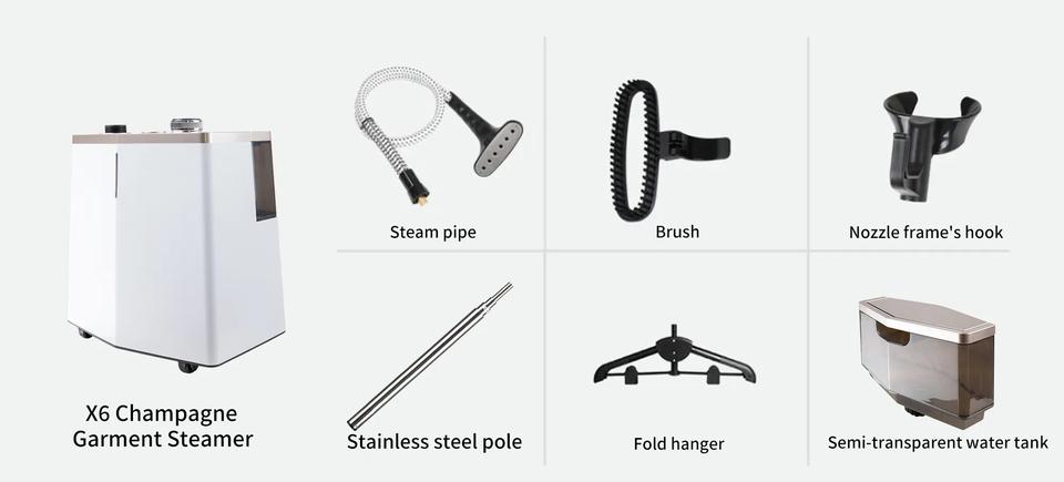 Stiratore a Vapore X6 da 2200W con Vapore Potente, 3 Livelli di Potenza, Appendiabiti Pieghevole Regolabile e Mobilità Fluida per Stirare i Vestiti