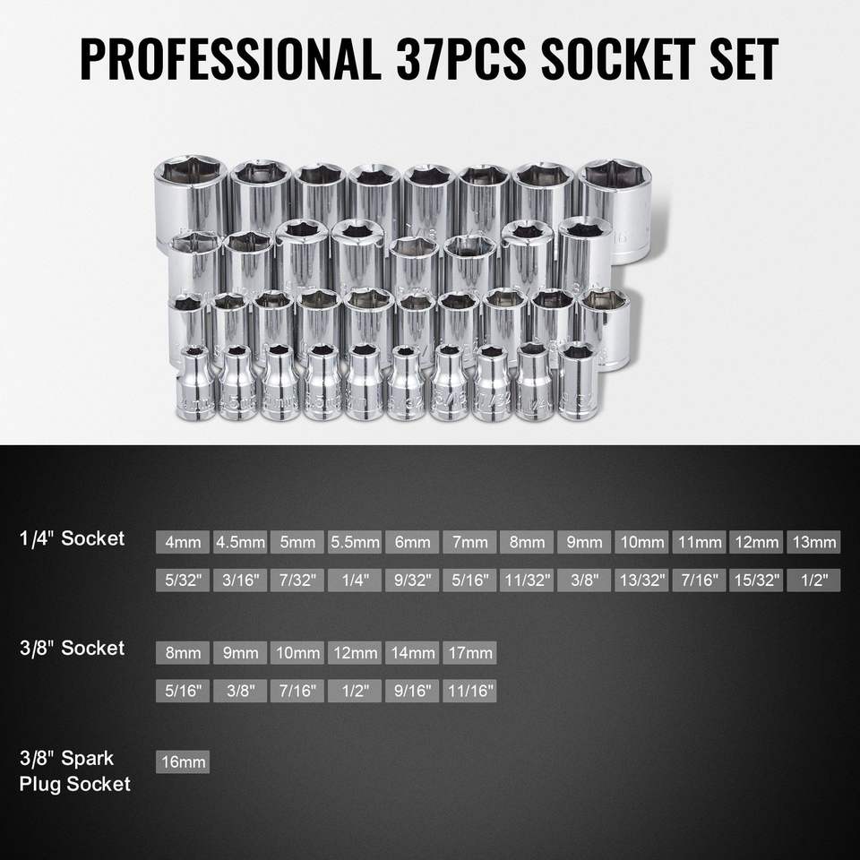 Set di strumenti meccanici da 221 pezzi 1/4 SAE di unità \ "e 3/8 \" e prese metriche