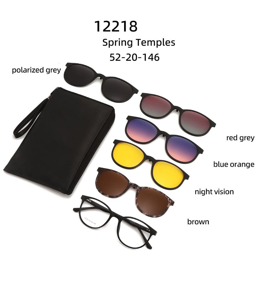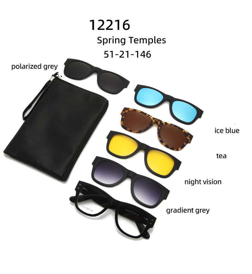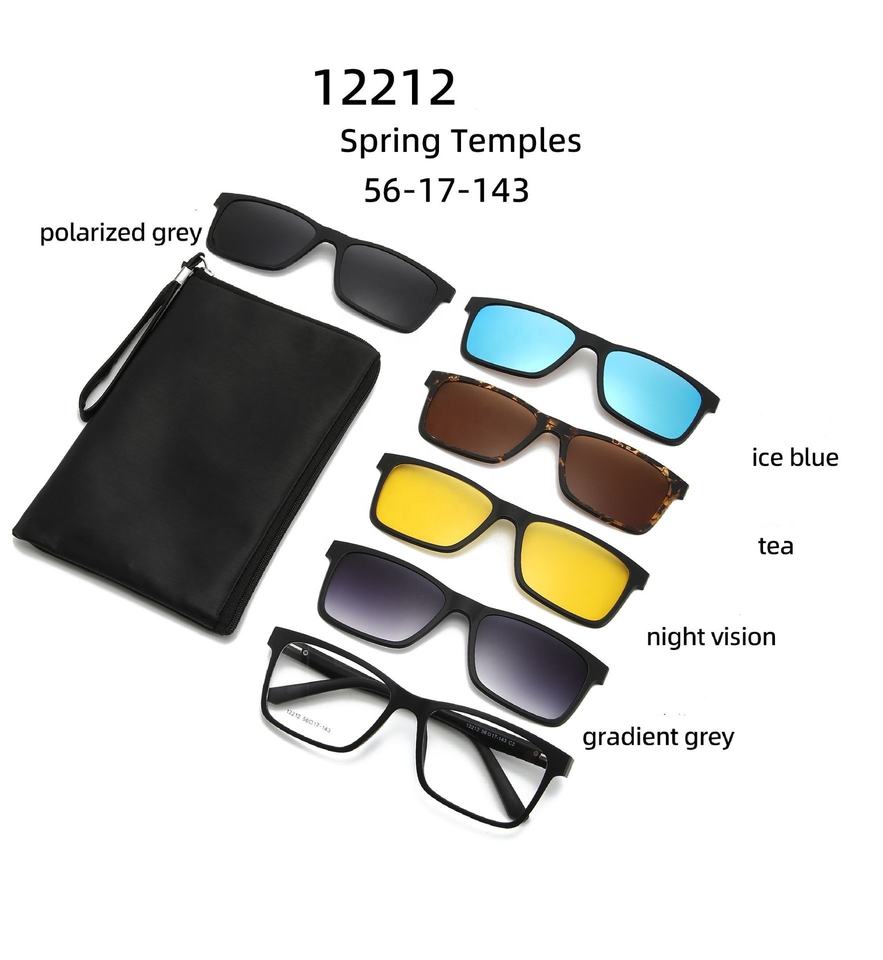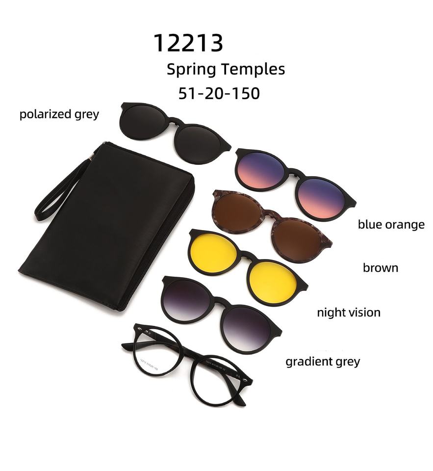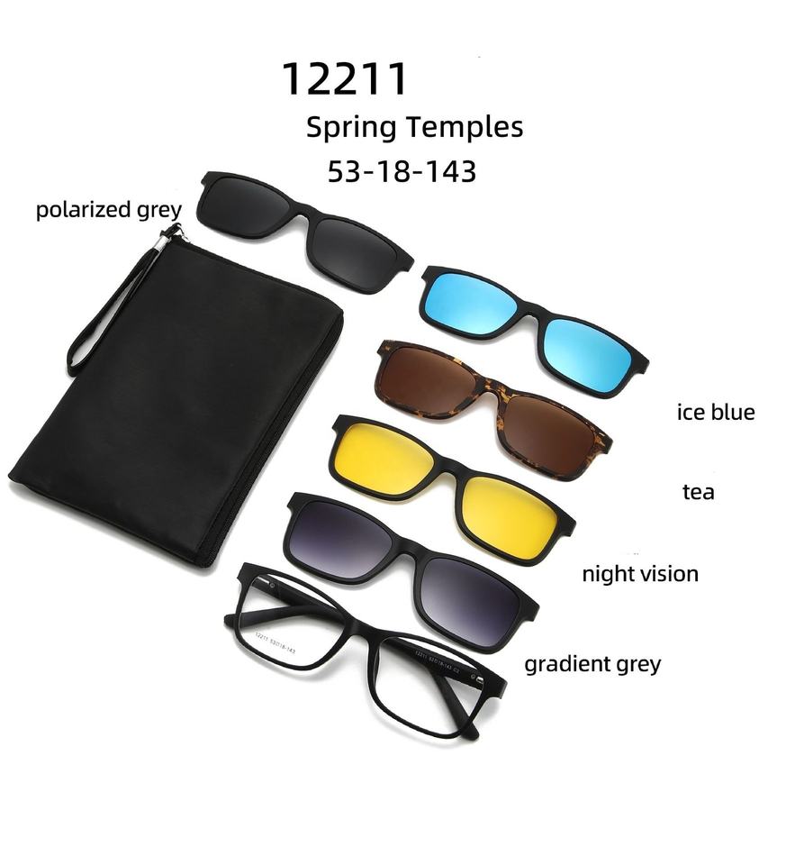 2253A Montature per Occhiali Super Leggere in TR90 con 5 Clip per Occhiali da Sole, Lenti a Specchio Polarizzate con Clip Magnetica