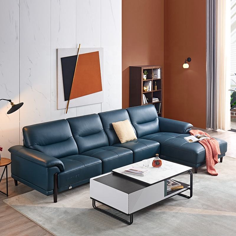 22678 Quanu all'ingrosso a forma di L vera pelle stile europeo divano Set arredather Lounge Suite divano Set soggiorno mobili