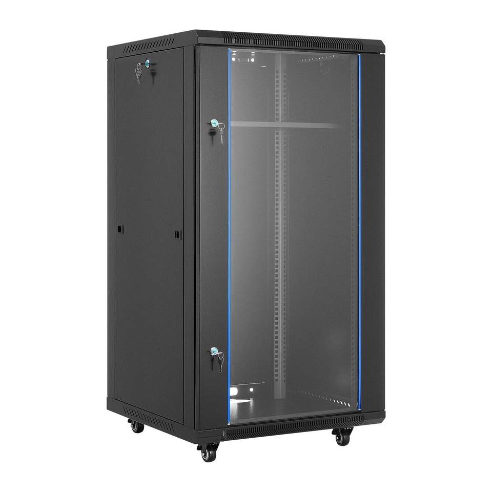 Armadio di Rete 22U da Parete, Profondità 23.6, Capacità Massima 300 Libbre, Vetro Temperato, Armadio Server con Funzione di Blocco