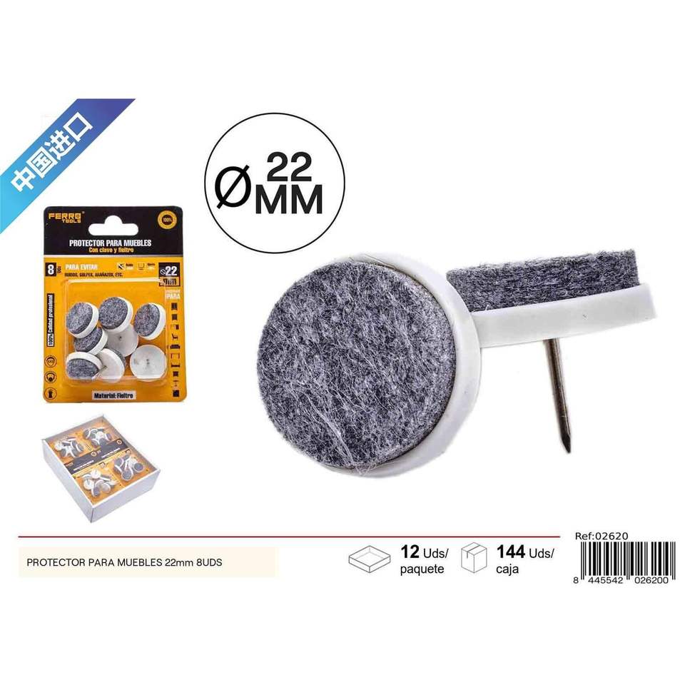 22mm Furniture Protectors Pack of 8 PTFE Felt Rubber and Metal-for Home and Office Furniture Protection