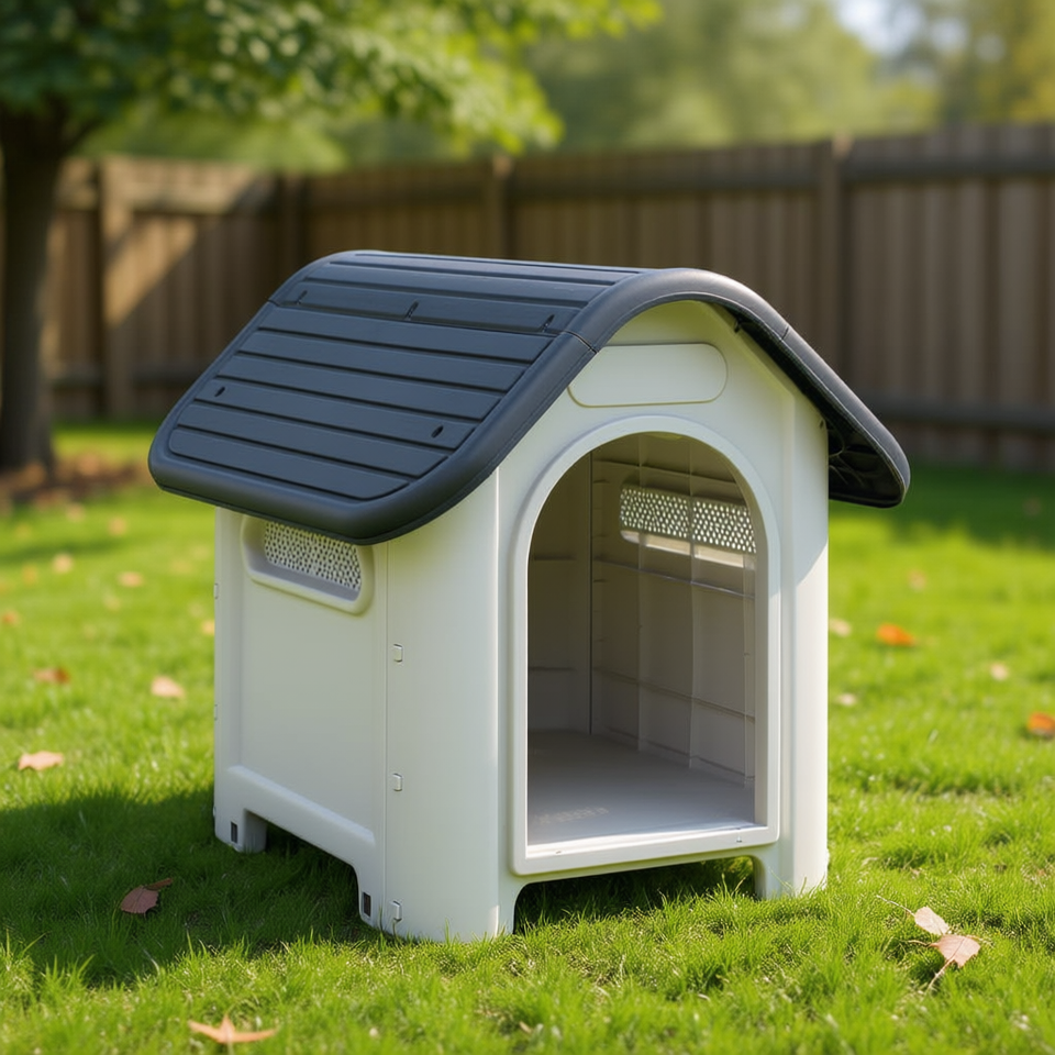 Dog House 23.2x29.5x26 Inches Gray Polypropylene Modern Outdoor Pet Furniture Medium Breed All Seasons