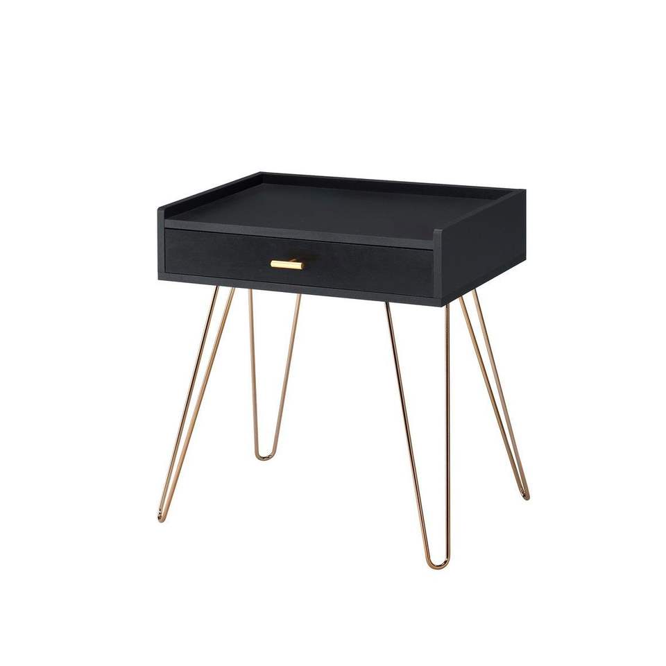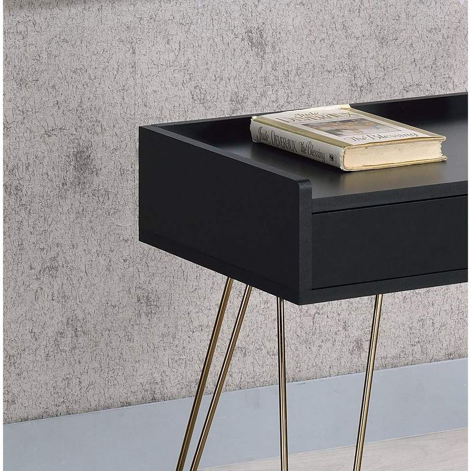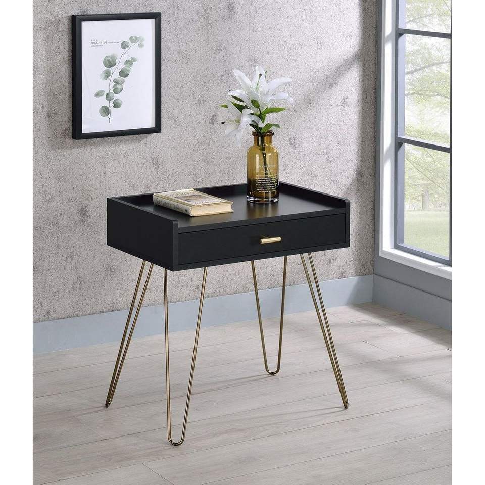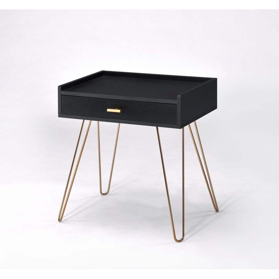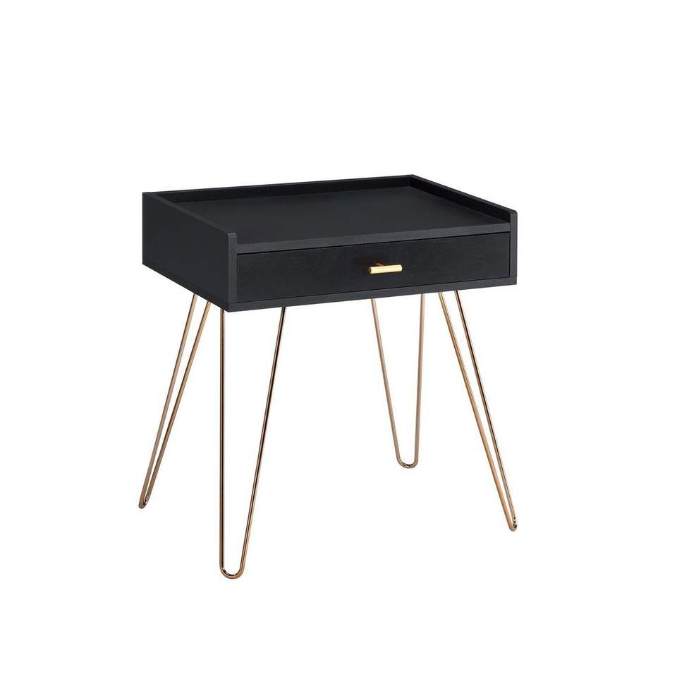 Comodino nero Allen Mid Century da 23,5 pollici con gambe a forcina in rame, tavolino moderno