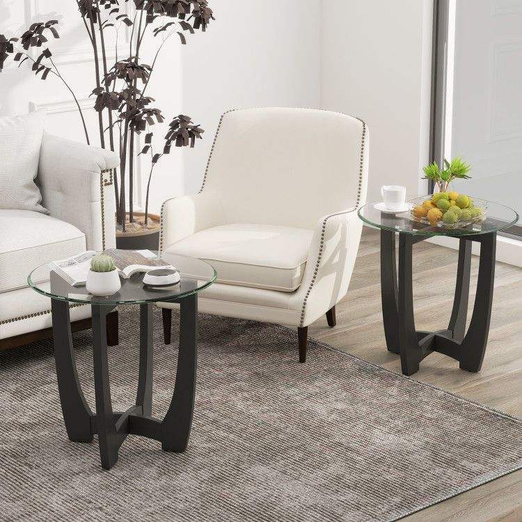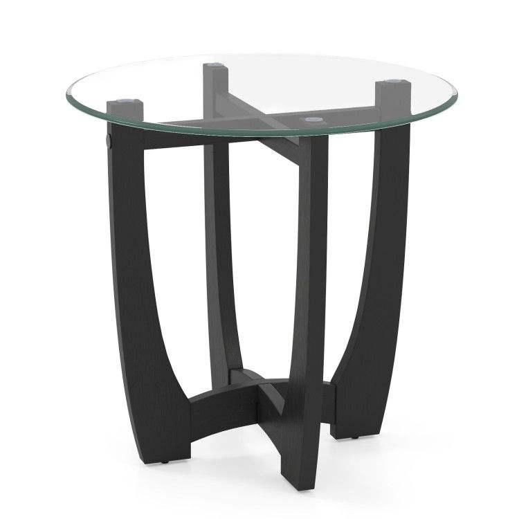 Tavolino Rotondo da 23,5 Pollici con Piano in Vetro Temperato, Tavolino da Caffè Resistente