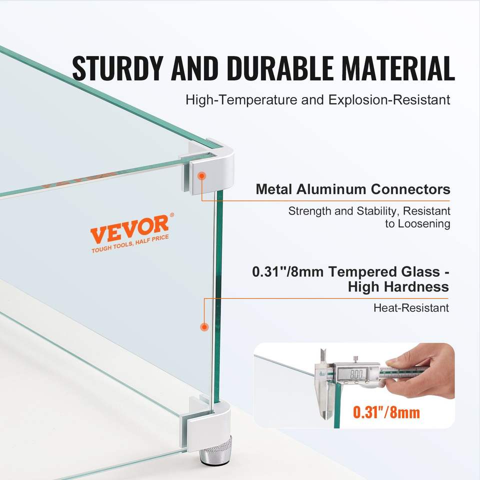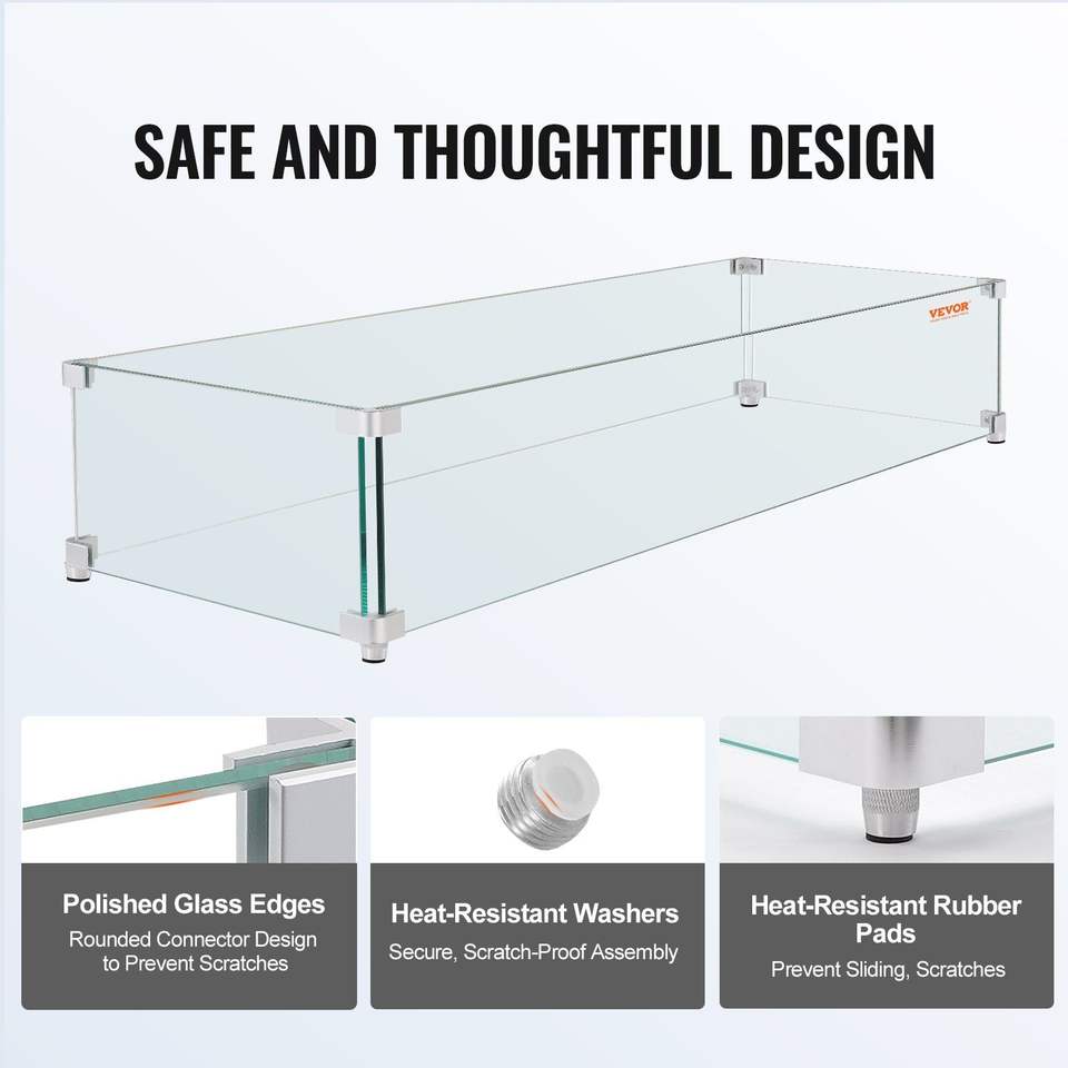 Paravento in Vetro Temperato Trasparente 23,5 X 7,5 X 6,5 Pollici per Tavolo con Braciere a Gas Quadrato, Spessore 0,31 Pollici