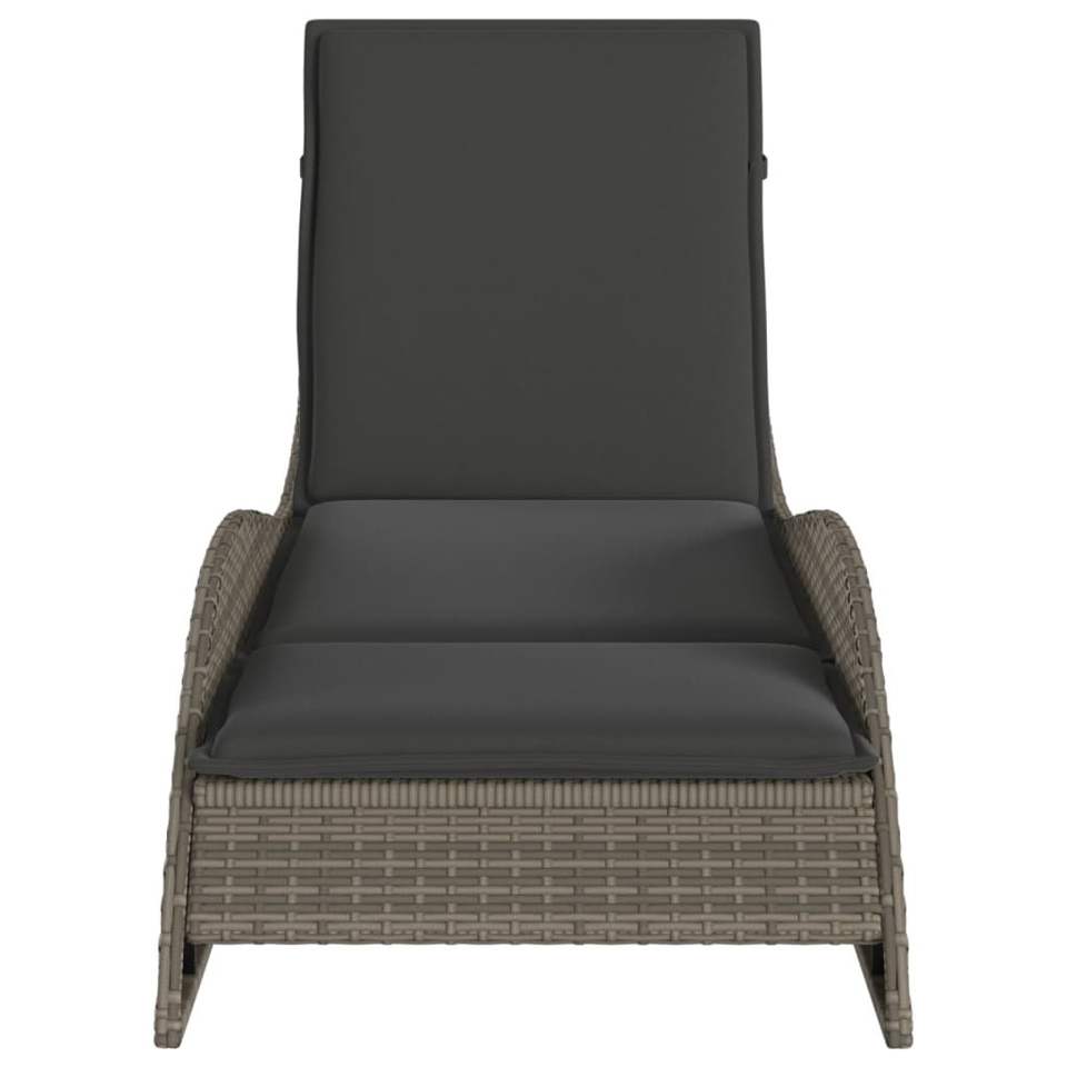 Lettino Prendisole in Rattan PE Grigio 60 x 205 x 73 cm, Sedia Reclinabile da Esterno con Cuscino, Design Contemporaneo