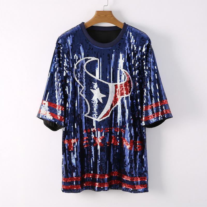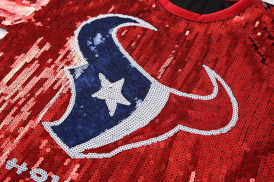 Abito con Paillettes della Squadra di Football HOUSTON Texans in 23 Colori, Vestito Corto con Maniche Corte e Paillettes