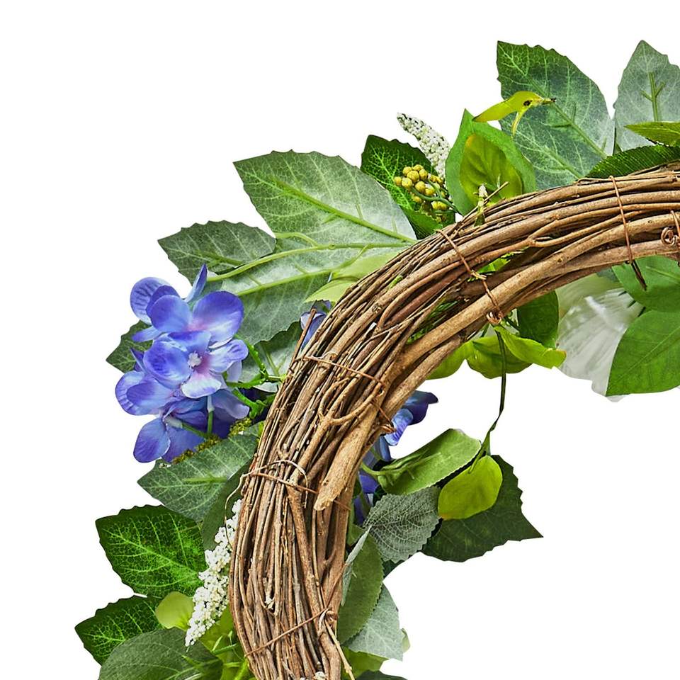 Ghirlanda Decorativa Artificiale da 23 Pollici in Blu, Bianco e Verde con Ortensie, Rose, Bacche e Viti - Ghirlanda e Ghirlandine Decorative Annuali