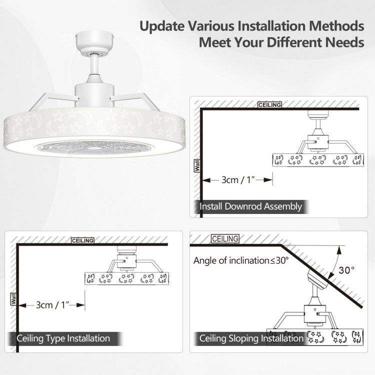 Ventilatore da Soffitto LED da 23 Pollici con Telecomando e Elegante Illuminazione LED