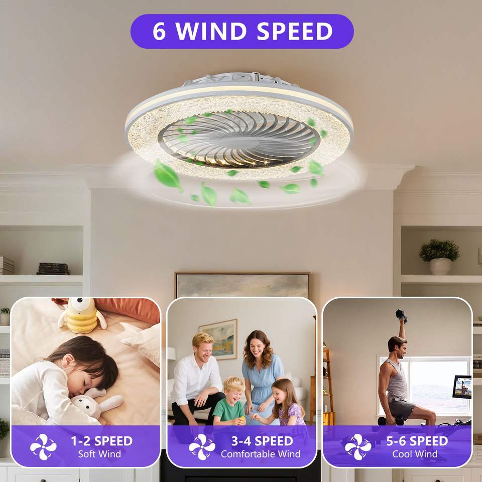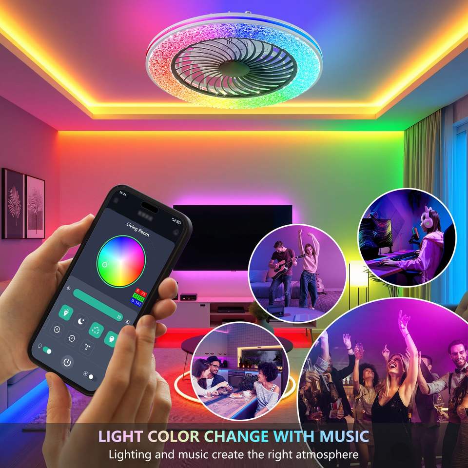 Ventilatore da soffitto moderno a LED da 23 pollici con luci RGB, design senza pale per soggiorno a basso profilo, ventilatore da soffitto a incasso