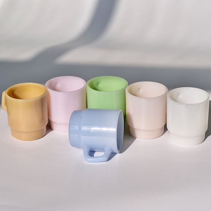 230/400ml Sublimation Creamy Colored Blanks Beer Opal Glasses Basic Milk Glass Set Coffee Cup Mug With Handle