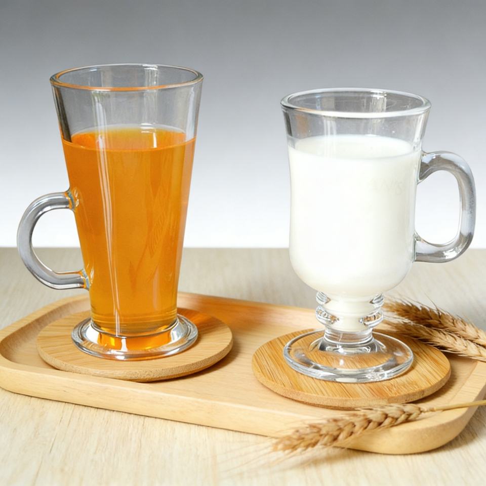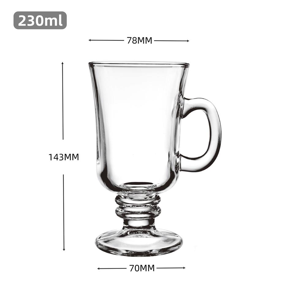 Tazza da Caffè Irlandese in Vetro Senza Piombo da 230ml, Design Europeo, con Manico e Piedino, per Latte, Caffè Freddo, Tisane, Uso Ristorante e Casa