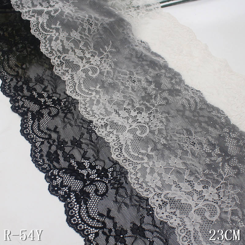 23cm Floral Stretch Lace Mesh Black Beige Nylon Spandex Lace Trim for Underwear New French Style Fabric for Sewing & Decoration