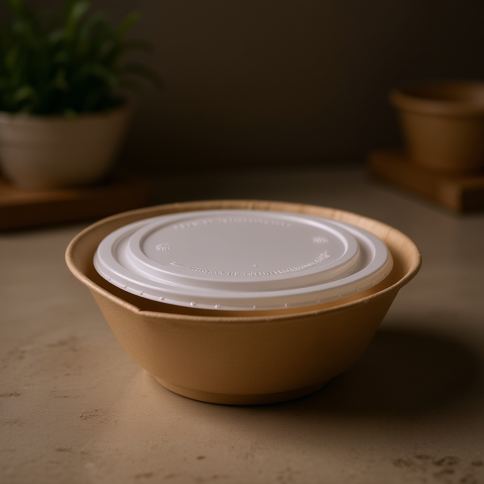 Coperchio Monouso 24-32L per Ciotole in Bagassa, Senza PET e PFAS