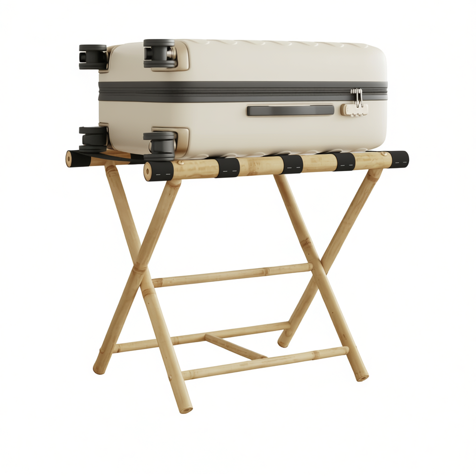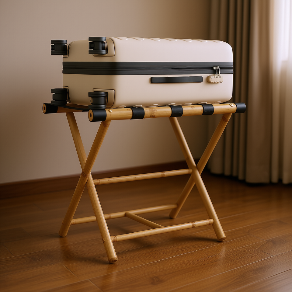 Bamboo Folding Luggage Rack 24.4x16.5x19.9 Inch Durable Portable Storage Solution For Hotel Furniture
