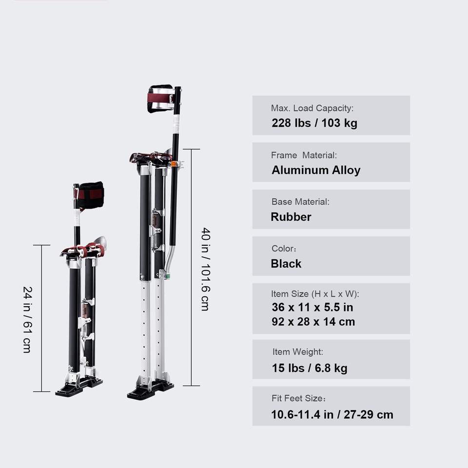Pali da Lavoro Regolabili in Alluminio 24-40 con Protezioni Ginocchia Gomiti Fianchi, Attrezzo da Lavoro Durevole Antiscivolo per Cartongesso