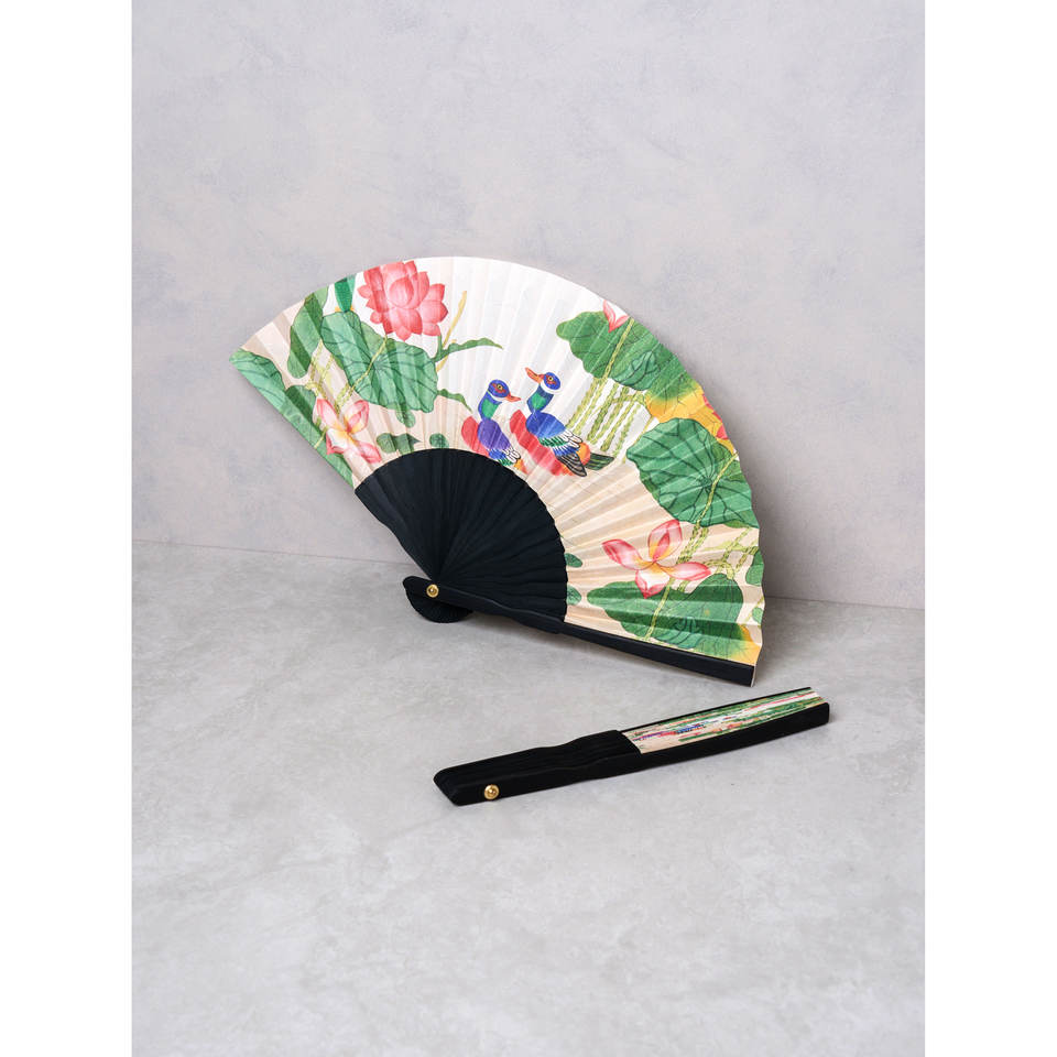 24.5 cm Bamboo Folding Portable Fan with Bird and Flower Paintings Wearable Accessory