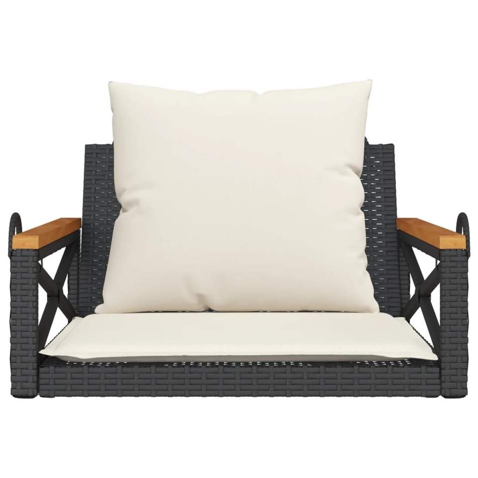 Panca a dondolo in polyrattan nero da 63x62x40 cm con cuscini per patio