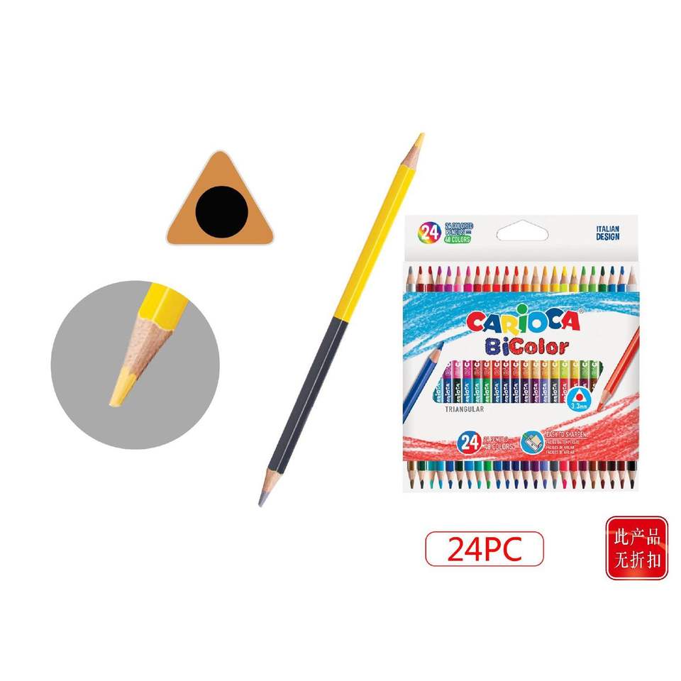 Matite di plastica a due colori triangolari a 24 colori in una scatola per disegnare