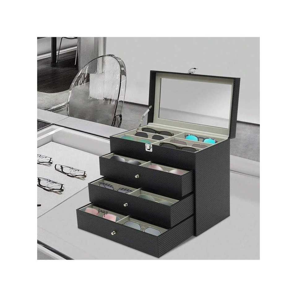 24-Compartment Lockable Sunglasses Case Tray Display Showcase Organizer Dust Proof PU Eyewear Box Drawers for Men Eyeglasses