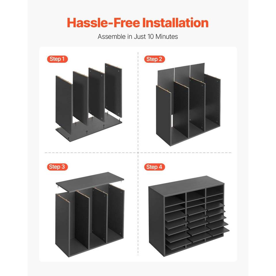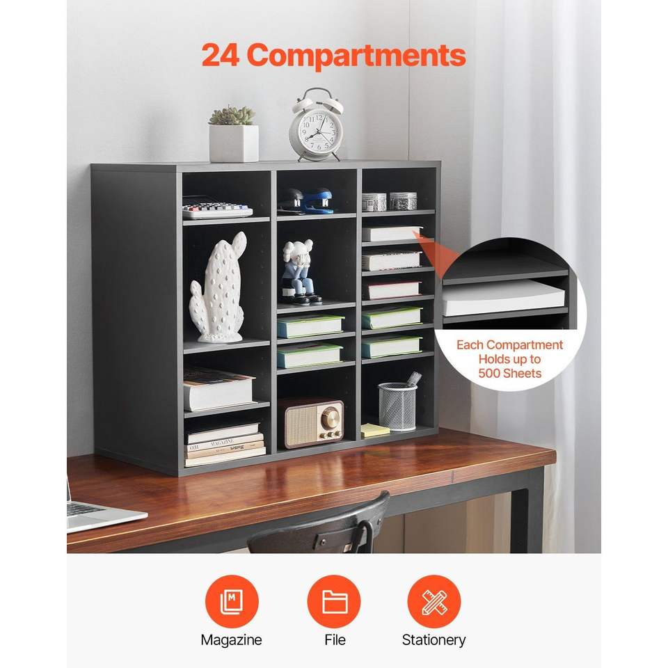 Organizzatore per Ufficio in Legno a 24 Scomparti con Ripiani Regolabili in MDF, Armadietto Portadocumenti