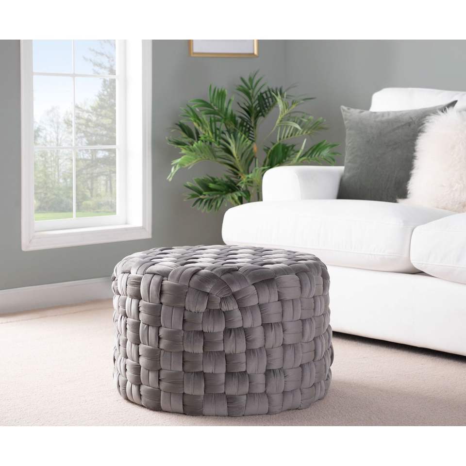 24 \ "sgabelli e ottomani rotondi intrecciati in velluto grigio scuro