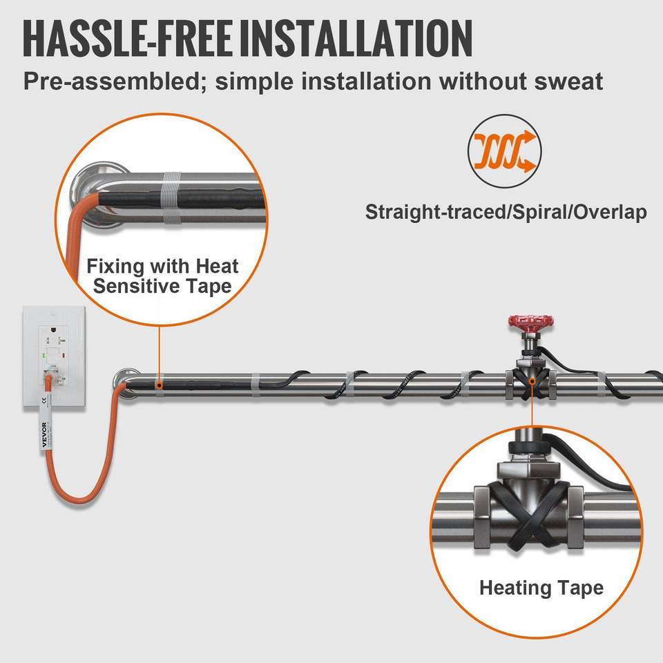 Cavo Riscaldante Autorigenerante da 24 Piedi 5W/ft, Protezione Antigelo per Tubi in PVC, Metallo, Plastica, Componenti e Sistemi RV