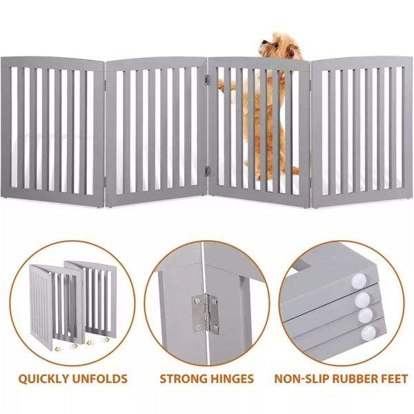 24\" Gray Folding Freestanding Wood Pet Dog Safety Gate-4 Panel Pet Gates & Pens