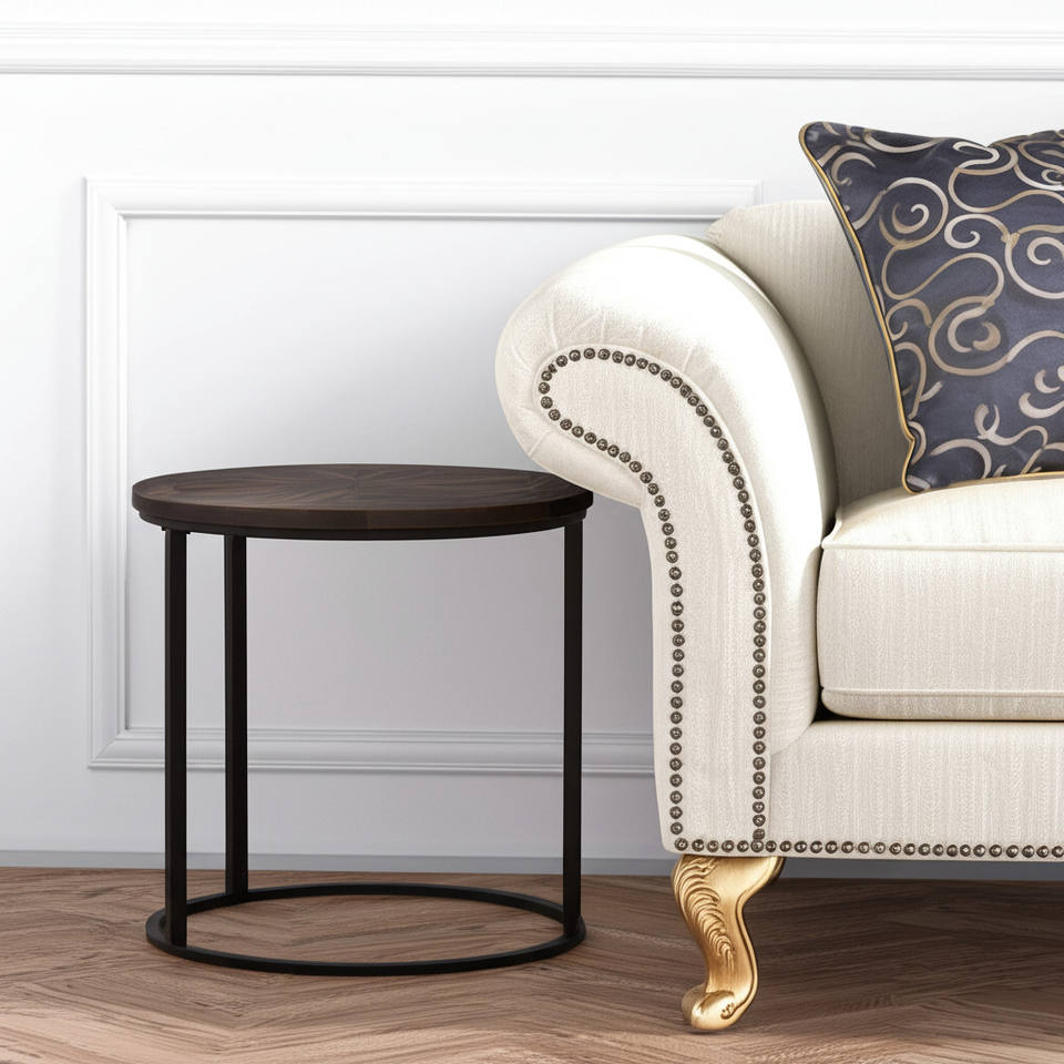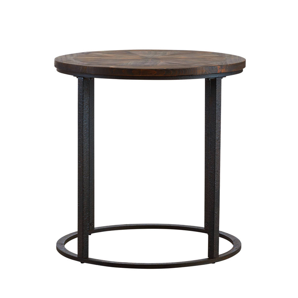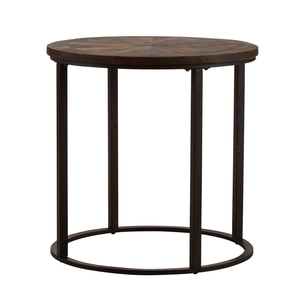 24\" HMS Natural Wood Solid and Iron Round End Table for Living Room Furniture